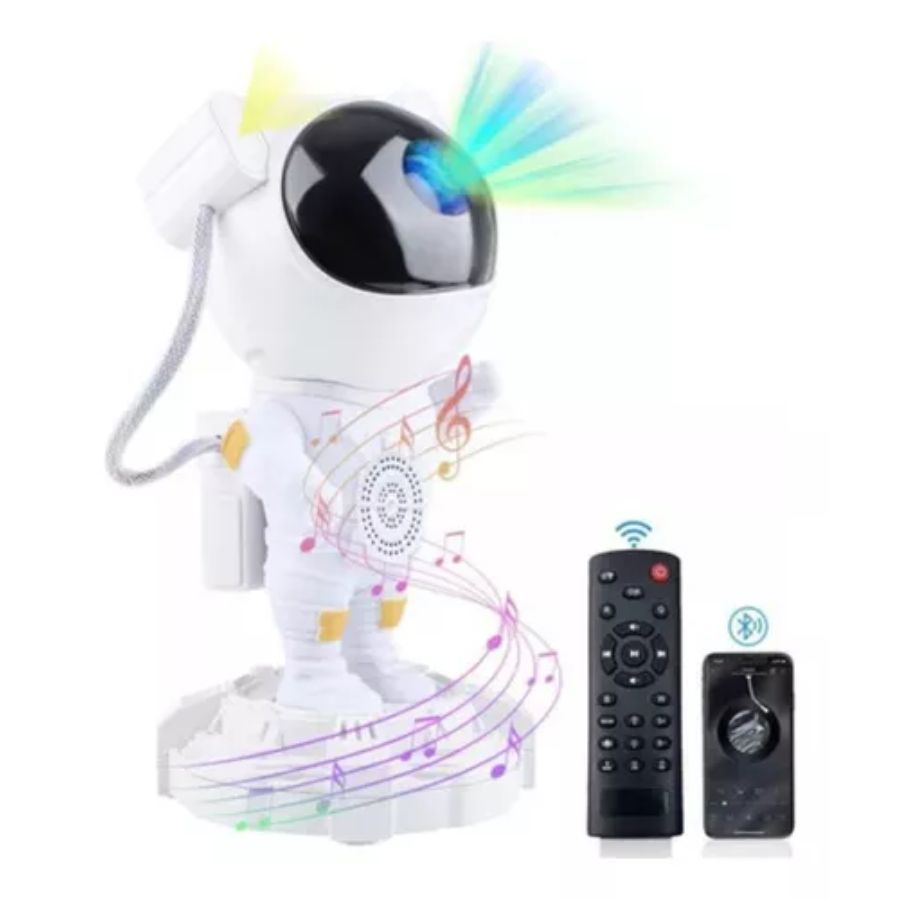 Lámpara de Mesa Astronauta Proyector de Galaxia con Bluetooth y Parlante - Control RemotoTransforma tu espacio en un universo de estrellas y galaxias con esta increíble Lámpara de Mesa Astronauta. Además de ser una elegante lámpara de ambiente, cuenta con un proyector de galaxia que llena tu habitación de luces dinámicas, creando una atmósfera mágica y relajante, perfecta para dormir, meditar, estudiar o simplemente disfrutar de una noche de relax.Características principales:Proyector de Galaxia: Proyecta un espectacular cielo estrellado y colores de galaxia en las paredes o techo de tu habitación. Los efectos de luz son ideales para crear un ambiente cósmico único y relajante.Bluetooth y Parlante Integrado: Con la función Bluetooth, puedes conectar tu smartphone o cualquier dispositivo compatible para reproducir tu música favorita a través del parlante integrado de alta calidad. Crea una experiencia inmersiva con música suave o sonidos relajantes acompañados de la proyección de las estrellas.Diseño Astronauta: Su diseño exclusivo de astronauta agrega un toque creativo y moderno a tu habitación, siendo perfecto para los amantes del espacio y la ciencia ficción. Ideal también como decoración única para oficinas, dormitorios y salas de entretenimiento.Control Remoto: Controla todas las funciones de la lámpara de forma sencilla con el control remoto incluido. Ajusta las luces, cambia los colores, controla el volumen de la música y selecciona las opciones de proyección sin tener que levantarte.Función de Temporizador: Programa la lámpara para que se apague automáticamente después de un cierto tiempo, ideal para ayudarte a relajarte antes de dormir.ESPECIFICACIONES:* Material: ABS / PC / PVC* Color del Producto: Blanco* Longitud de Onda Laser: 532nm* Potencia LED: <5W* Modo de Control Remoto* Rango de Control Remoto: <5 mts* Fuente de Alimentación: 100-240V -- 50/60Hz -- 0.4A* Entrada de Trabajo: 5V - 1A* Tamaño del Producto: 120 x 113 x 228 mm aprox.* Entorno Aplicable: Hogar Interior (Mejor en un ambiente oscuro)* Temperatura de Trabajo: -10° -45° Celsius* Longitud Cable USB de Carga: 1 mtCARACTERÍSTICAS:La bonita cabeza de la lámpara robot astronauta se puede girar y desmontar. Tiene un brazo giratorio de 360°. A medida que la cabeza gira, puedes ajustar fácilmente el ángulo de proyección El proyector de estrellas Galaxy Night Light es un dispositivo versátil y encantador que trae las maravillas del cielo nocturno a tu hogar.El paquete incluye: el kit de proyector de astronauta, un cable USB, un manual y un control remoto.
