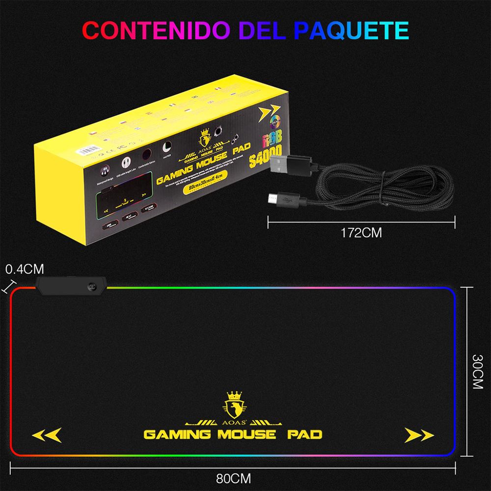 ⚡ Lleva tu setup al siguiente nivel con el Mouse Pad Gamer RGB AOAS S4000 XL, ideal para jugadores exigentes. Su gran tamaño de 80x30 cm te brinda libertad de movimiento y su base antideslizante mantiene la estabilidad incluso en las partidas más intensas.✔ Iluminación RGB multicolor, con efectos personalizables para un ambiente único.✔ Tamaño XL (80x30cm), ideal para teclado y mouse, mejora la comodidad.✔ Superficie waterproof, repele líquidos y facilita la limpieza.✔ Grosor de 4 mm, acolchado para mayor confort y precisión.✔ Puerto USB integrado, para conectar fácilmente.✔ Base antideslizante, asegura el control en cada movimiento.🎮 Diseñado para gamers que buscan estilo, precisión y funcionalidad en un solo accesorio. 💥